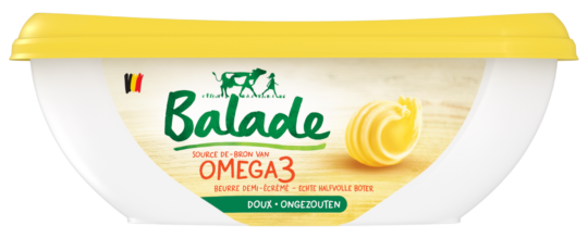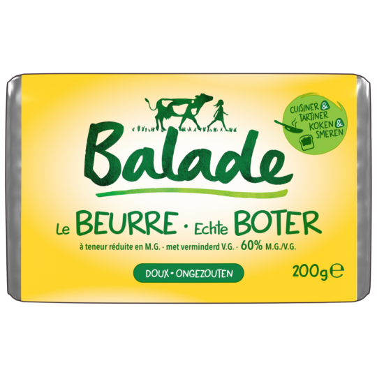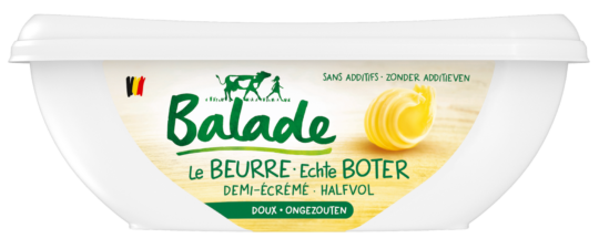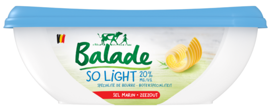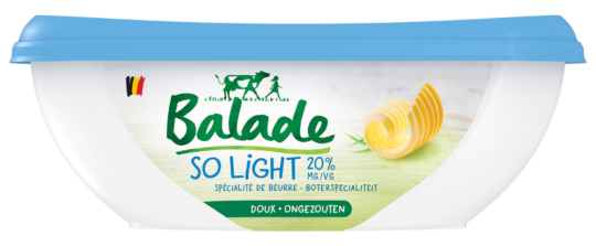 Balade est une marque belge qui offre une large gamme de produits laitiers simples, légers et savoureux, pour toute la famille : des beurres légers et facilement tartinables, des crèmes culinaires, une sauce béchamel et des laits battus sains et rafraîchissants.