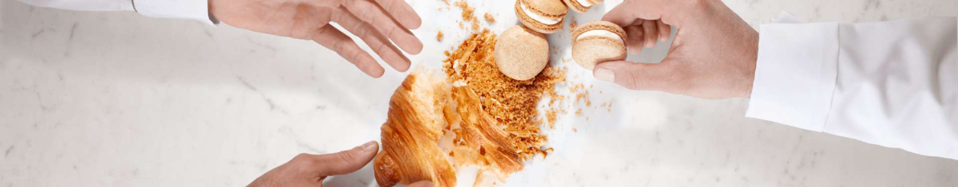 Met de ‘macroissant‘ geeft u onverkochte croissants een tweede leven! Dit innoverende recept, geïnspireerd op de traditionele macaron, vervangt het grootste deel van de broyage door verpoederde croissants. Het resultaat is een macaron die de smaak en de textuur van het origineel benadert, maar die economischer is en afval en verspilling vermidjt!