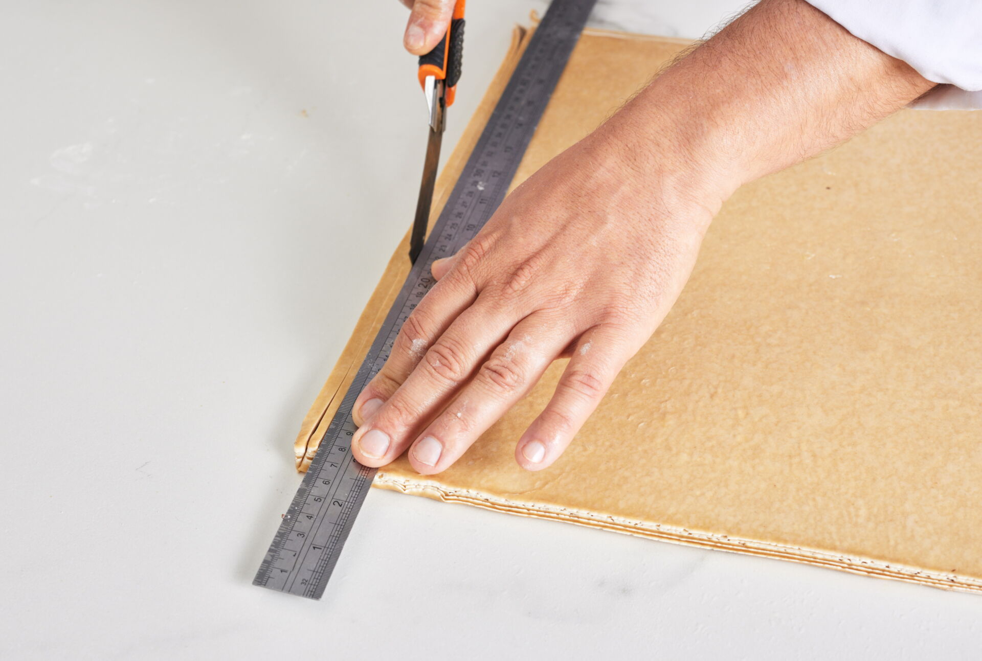 Roll to a thickness of 2.5 mm to form a 52 x 125 cm rectangle.