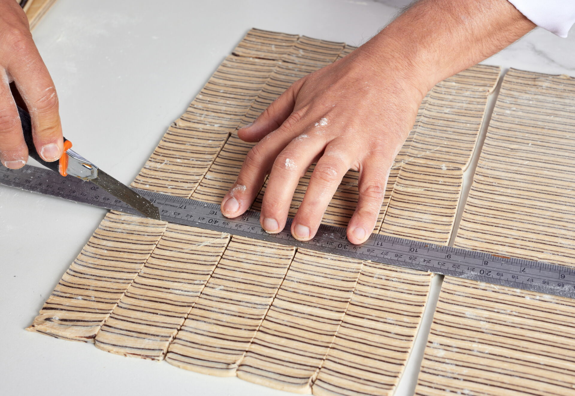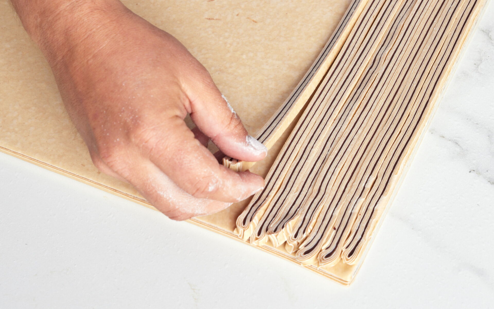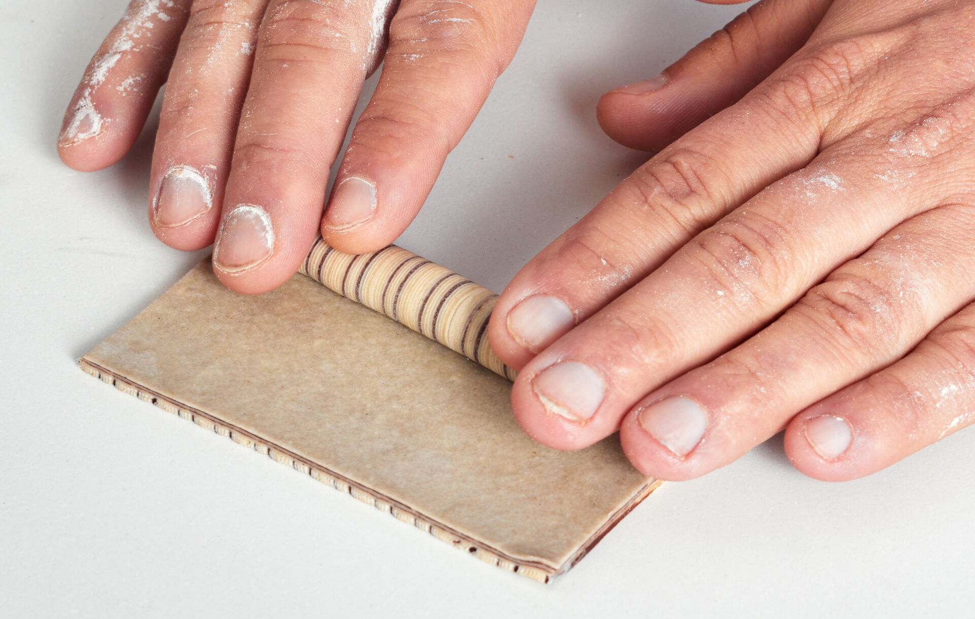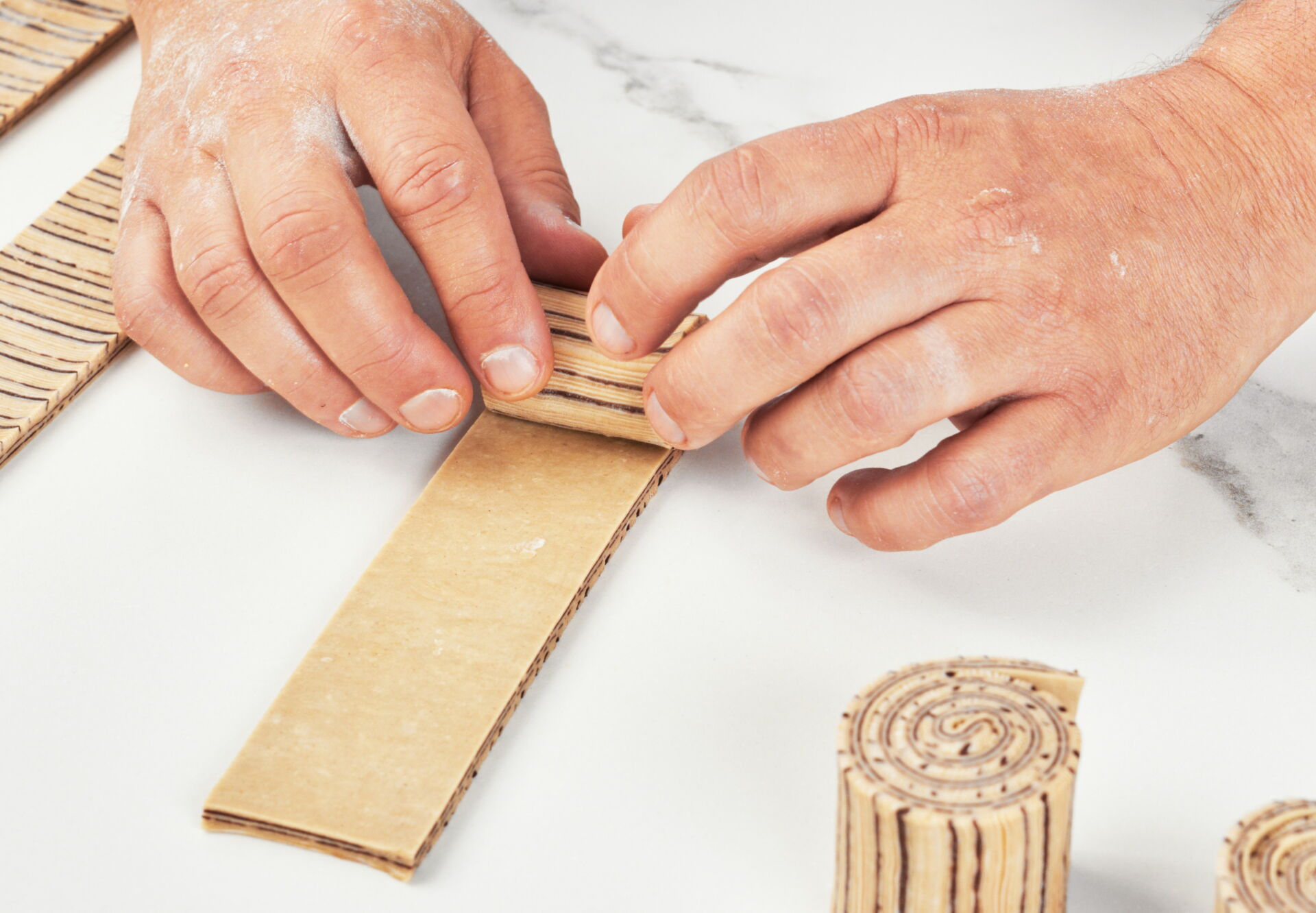 Roll to a thickness of 3 mm in the shape of a 150 x 30 cm rectangle.