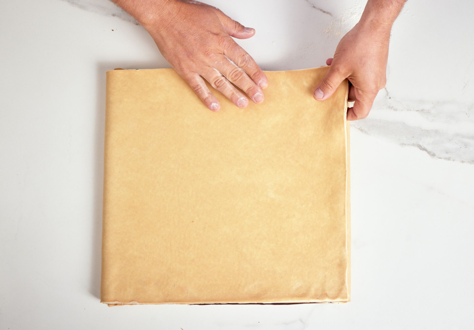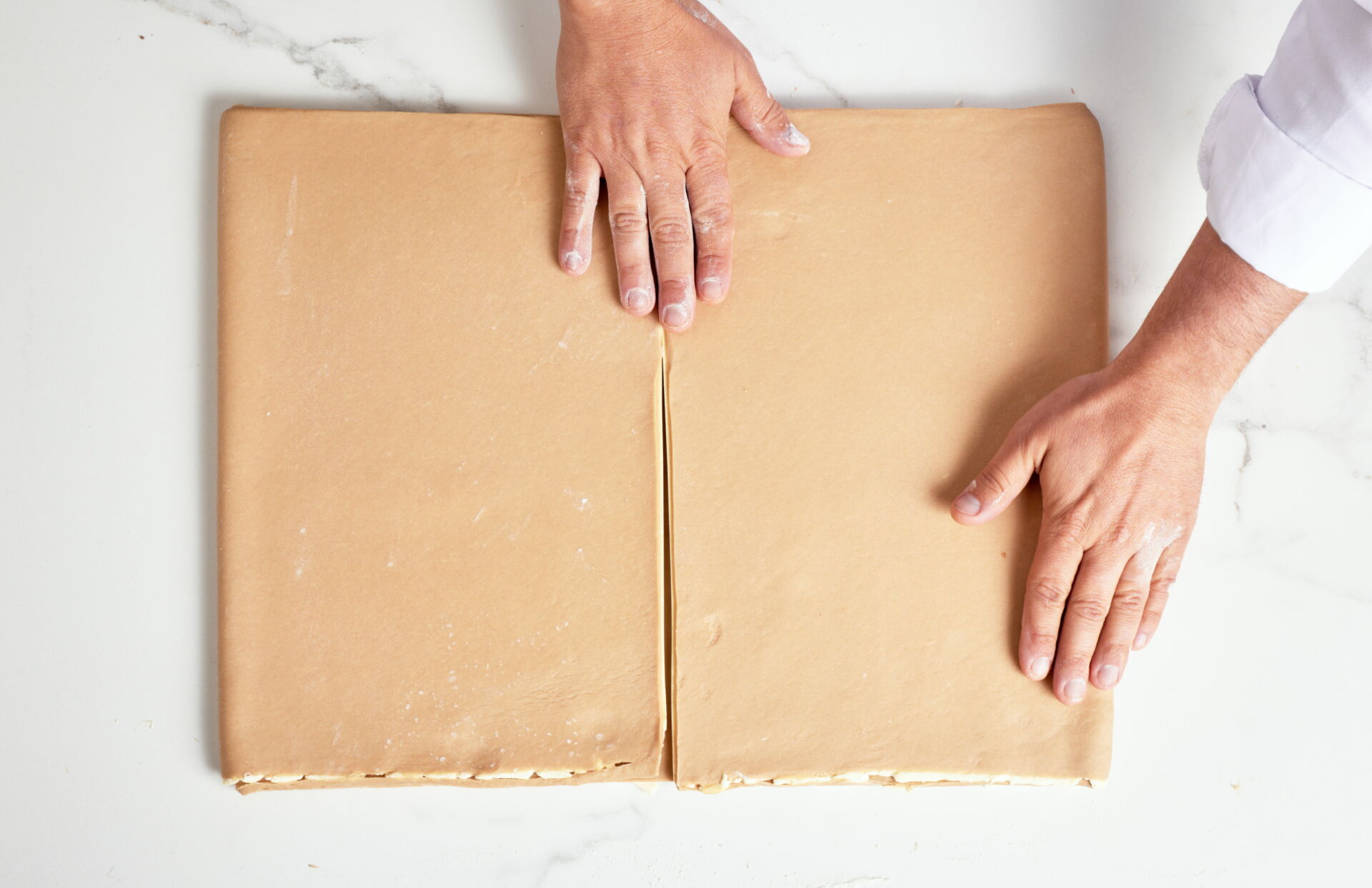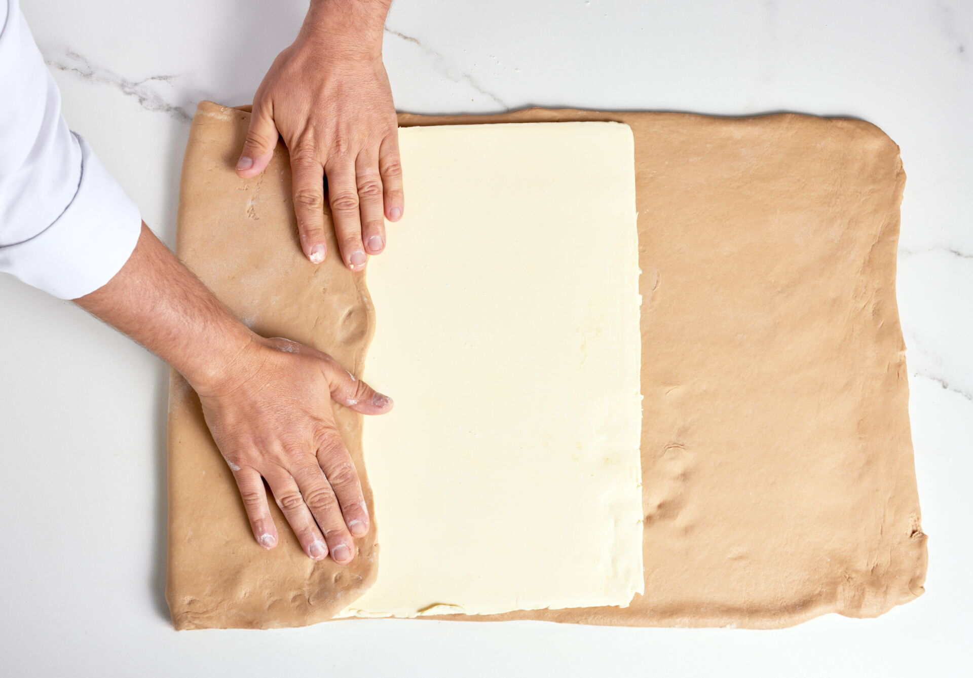 Roll the detrempe and butter sheet to 6 mm thickness.