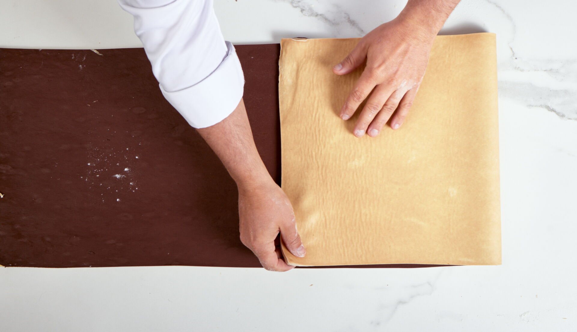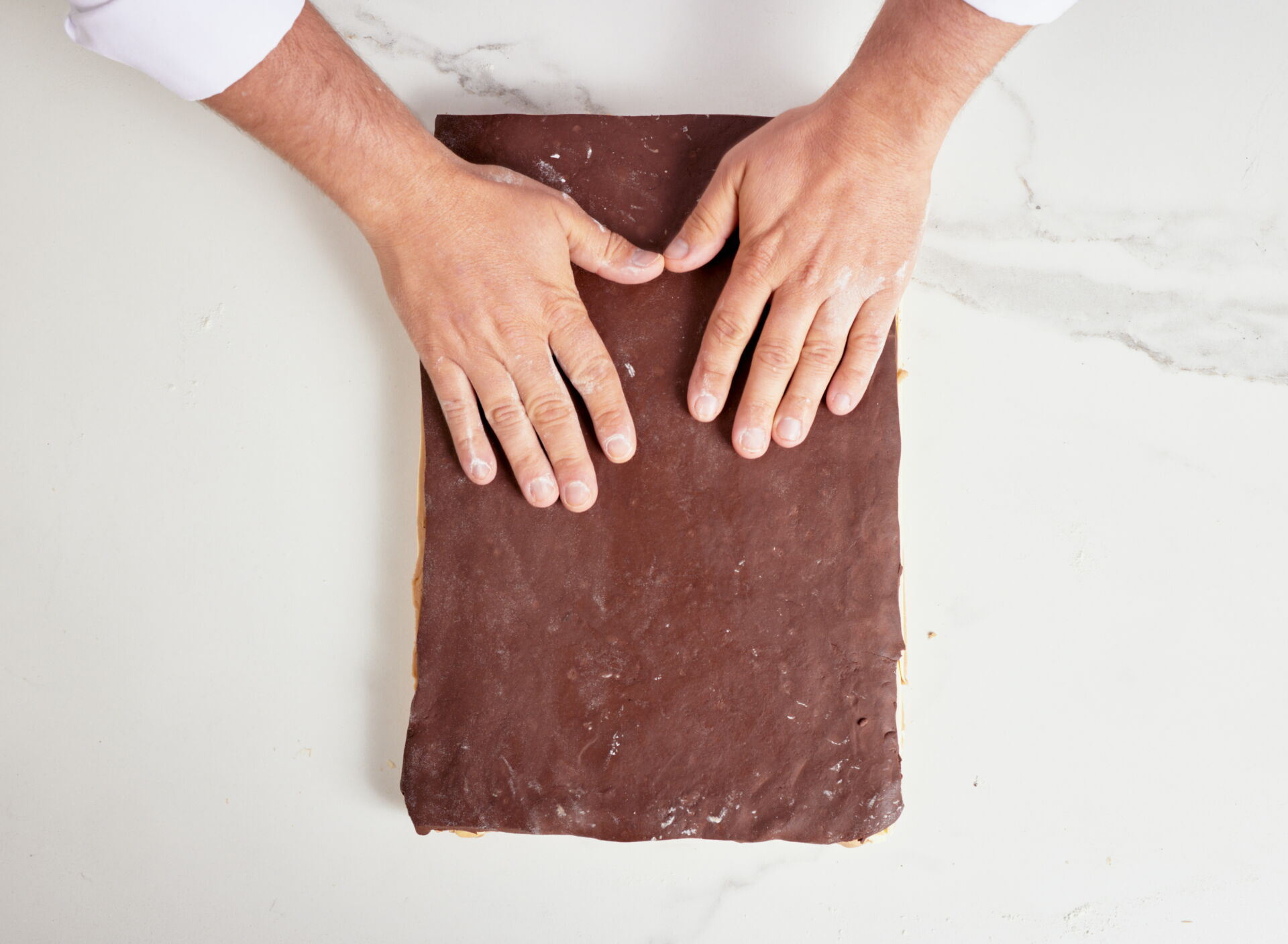 Roll to 4 mm thickness and place the chocolate dough on top.