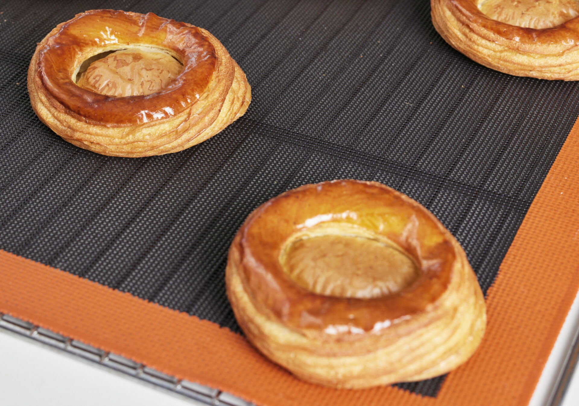 Brush lightly with egg wash and let proof at 26°C for 2 hours. Brush with egg wash again, then bake at 170°C for approximately 17 minutes.