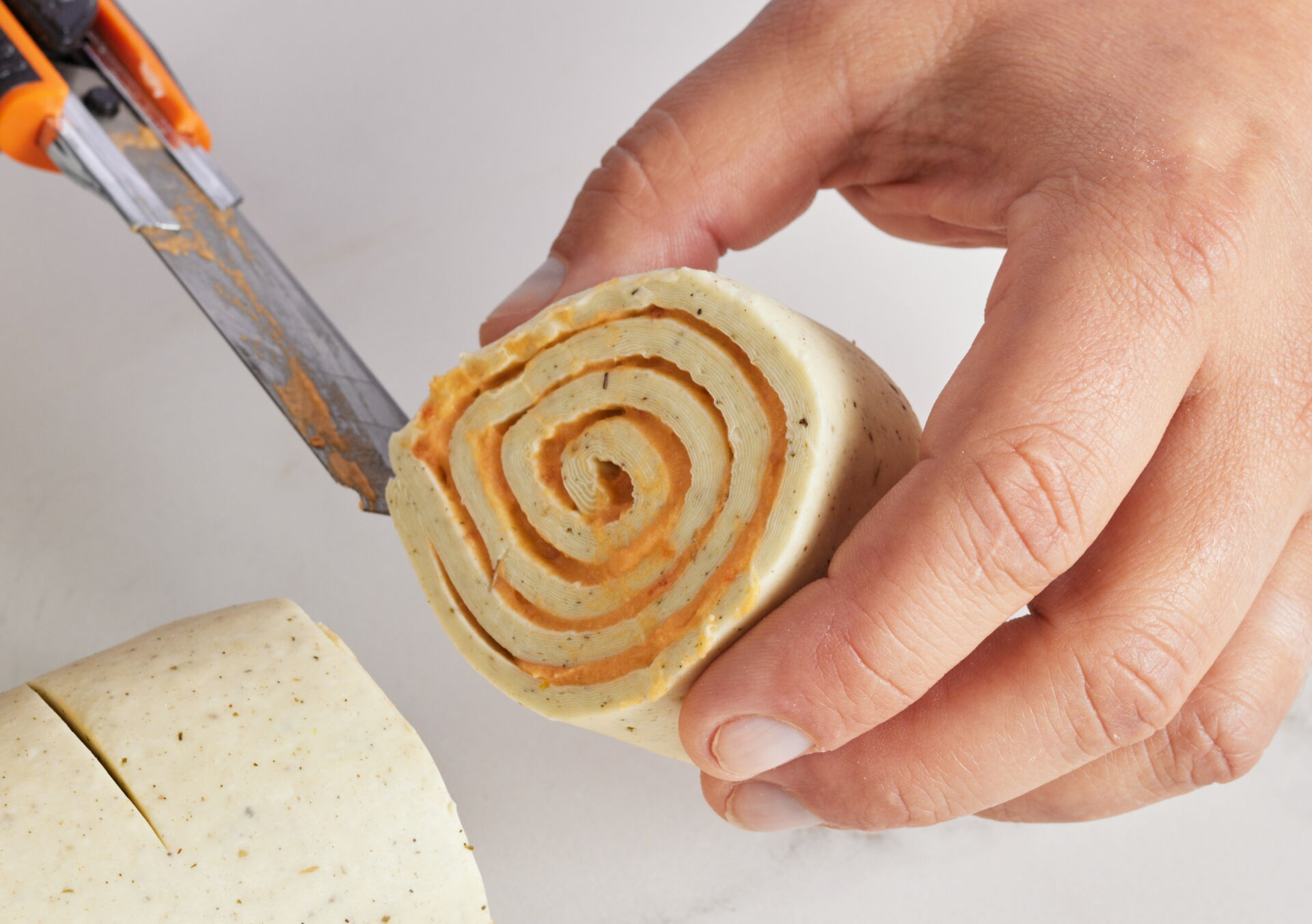 Roll to 6 mm thickness, give one single turn, and trim the edges.